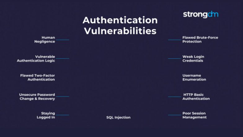 - Vulnerable Authentication Logic: Errors in application logic can create loopholes that allow attackers to bypass the authentication process or perform username enumeration to facilitate further attacks.